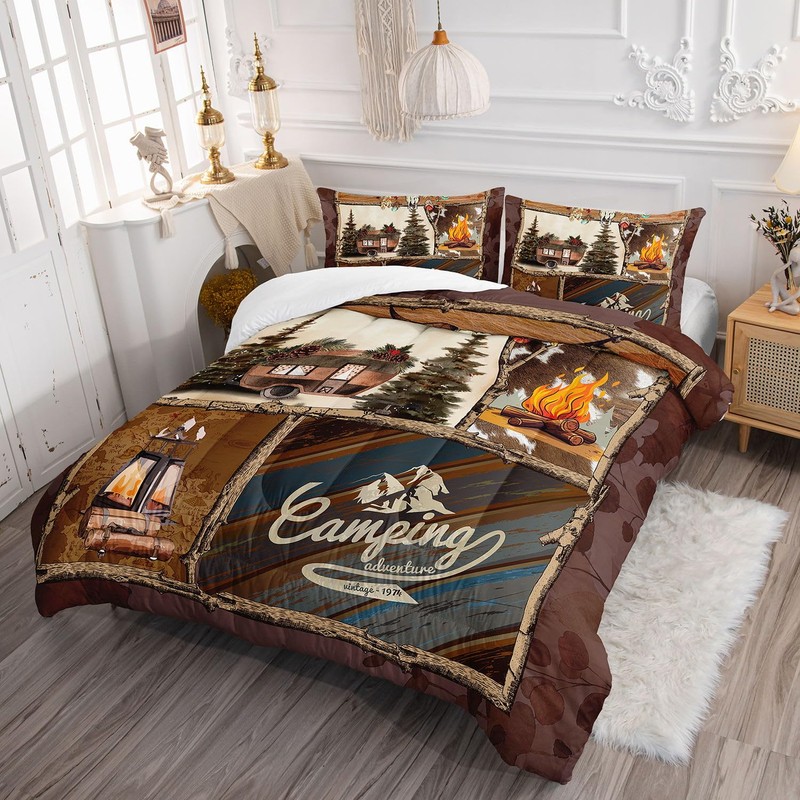 Smell Sunshine Camping Cabin Comforter Set for Kids Teens,Outdoor Adventure Campfire Comforter Set with 1 Comforter and 2 Pillowcases for Teens and Boys Bedroom All Season(Camping Cabin Twin)