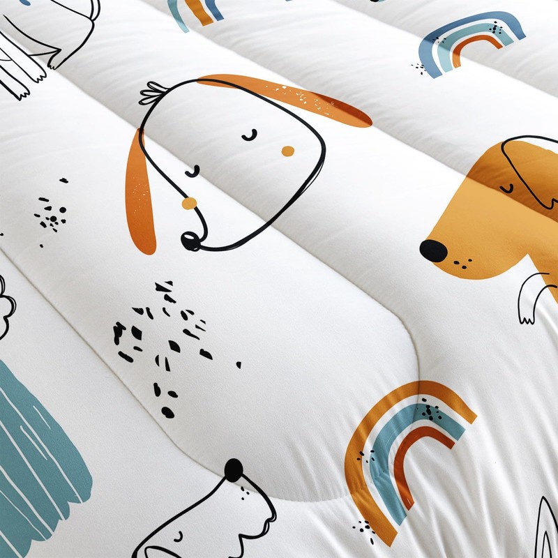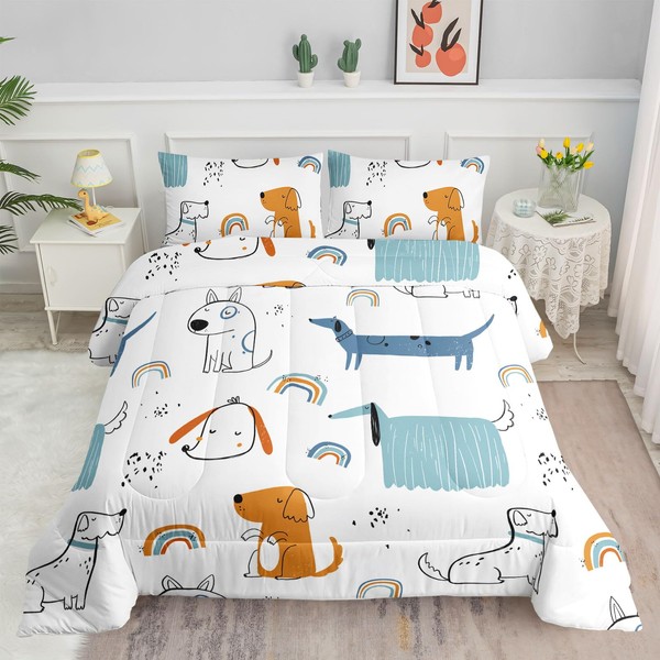 Smell Sunshine Kids Comforter Set Cartoon Dog Printed Pattern Bedding Set with 1 Comforter and 2 Pillowcases for Girls Boys Bedroom All Season(Cute Dog Queen)