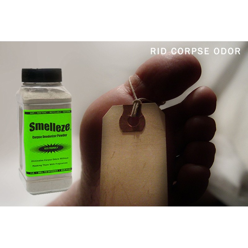 - SIMPLY SPRINKLE CORPSE SMELLS AWAY: For a clean smell, simply scatter SMELLEZE generously on odor source and repeat as needed. SMELLEZE eliminates offensive death odors and liquids without using harmful ingreients. It draws in odors like a strong magnet, absorbs them like a sponge, and removes them safely without smelly cover-ups. Due to its porous nature, SMELLEZE has a huge capacity to continuously absorb large amounts of cadaver odors.