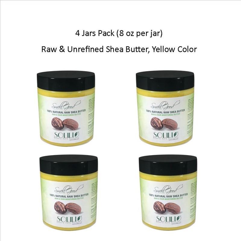 • SmellGood Pure Unrefined Shea Butter - Yellow, 8 OZ Jar, 4 units total included.