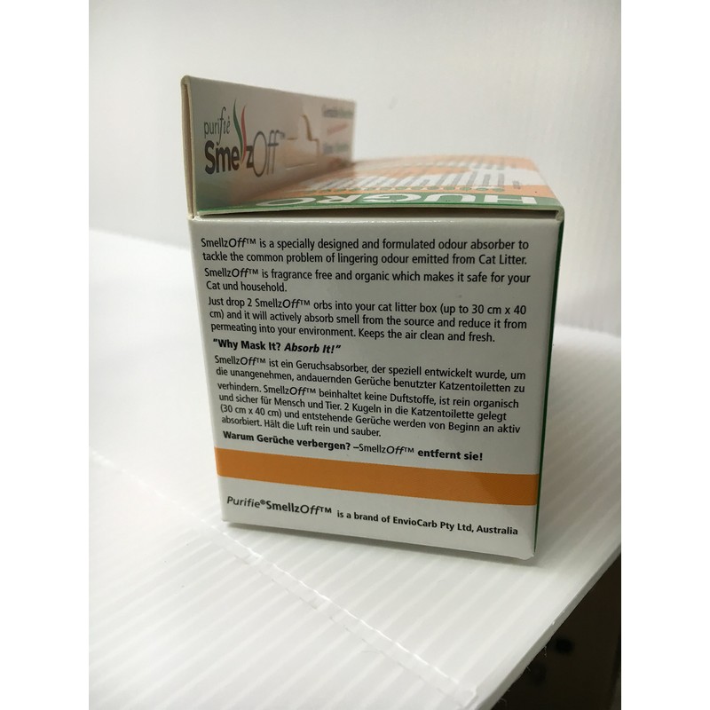 SmellzOff is an odour absorber specially formulated to prevent the unpleasant, persistent odours of used litter boxes.