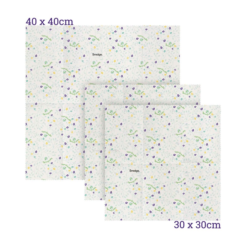 Smidge Vegan Wax Wraps Kitchen Set of 3 Reusable & Compostable 100% Organic and Washable Food Storage Eco-Friendly, Patterned