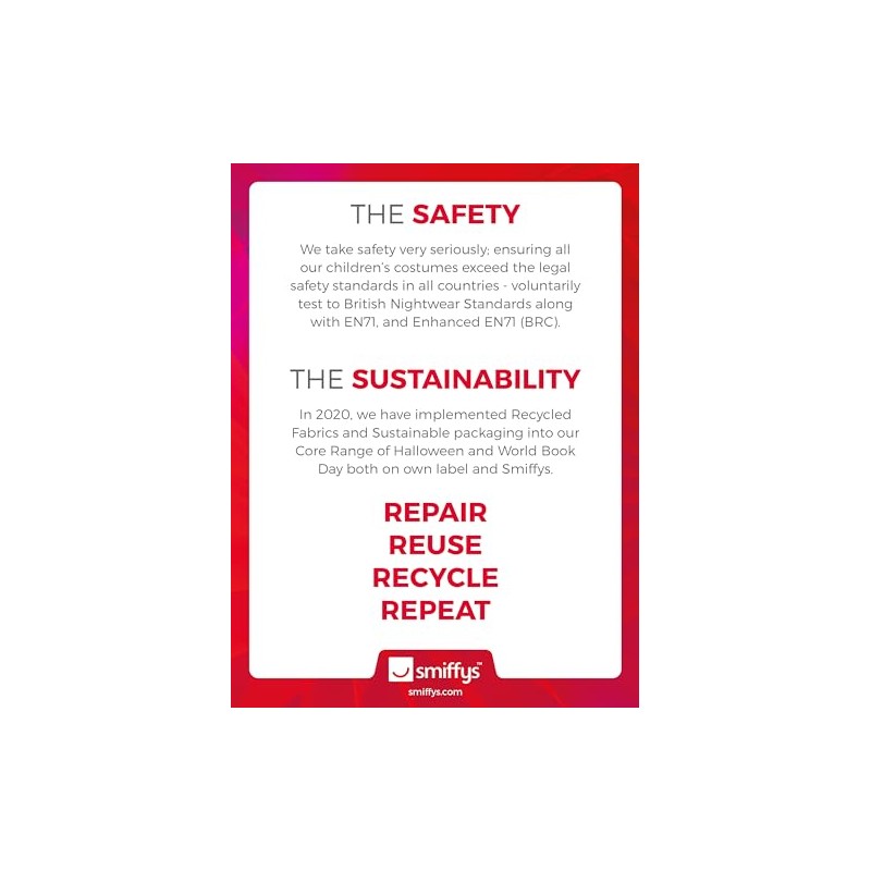 - Please note that all our Smiffys products will always come in full Smiffys branded packaging.
