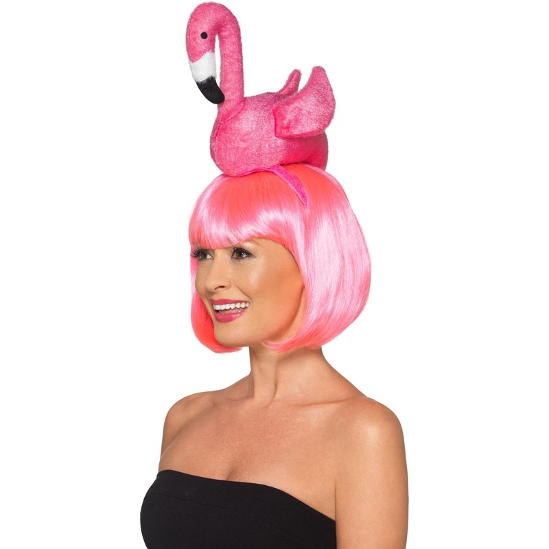 Smiffys Flamingo Headband, Pink, Hawaiian Luau Fancy Dress, Animal Dress Up Accessories