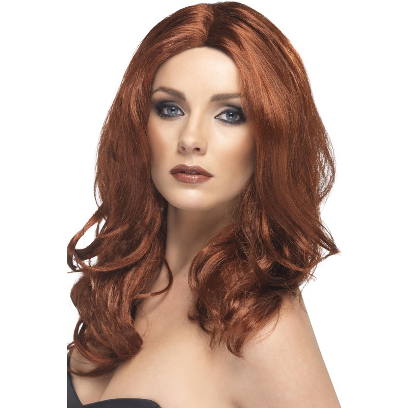 Smiffys Superstar Perücke, Kastanienbraun, Lang, Wellig, mit Scheitel bis auf Kopfhaut