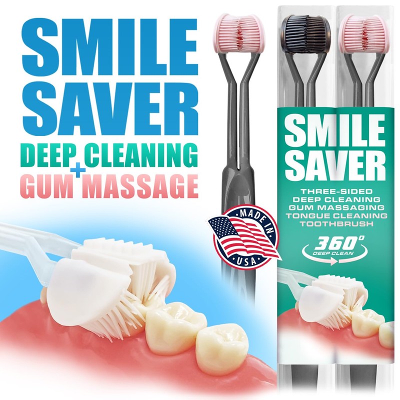 - 360° DEEP CLEAN ✨ 50% of children, 66% of young adults and over 70% of adults have some form of gingivitis. Only the SMILE SAVER 360° 3-Sided Toothbrush is clinically proven to remove more plaque while massaging and stregthening sensitive gums. Maintaining a healthy smile should begin early and can last a lifetime.