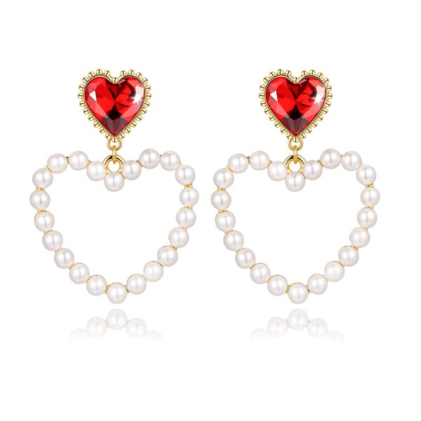 - Cute Heart Pearl Earrings: Valentine earrings in the shape of heart as the main shape, the combination of red crystals and small white pearls, romantic atmosphere exclusive to Valentine's Day, symbolizing the sweetness and sincerity of love, wear the pearl heart earrings as if the love will be carried with you, so that the love will shine between the ears