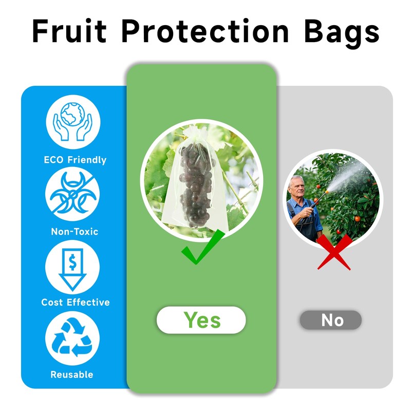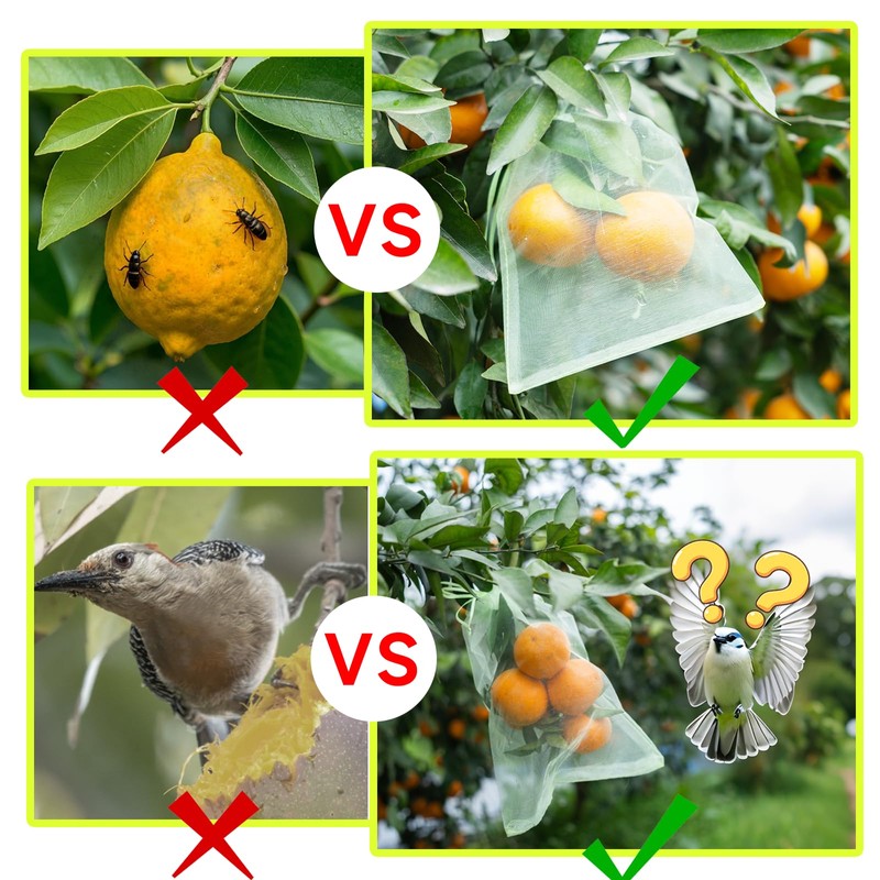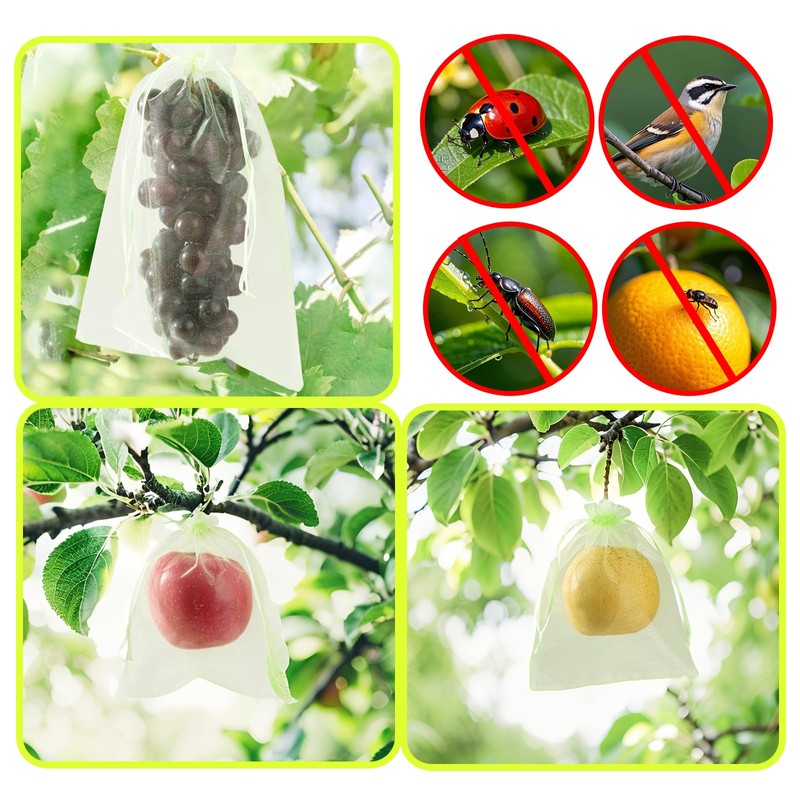 - Breathable Mesh for Natural Growth – Our Fruit Protection Bags feature a small mesh design with premium netting that allows water and sunlight to pass through, ensuring your green fruits and vegetables grow naturally. This effective pest barrier provides reliable garden protection by serving as plant covers from animals, keeping out insects, fruit flies, moths and birds.