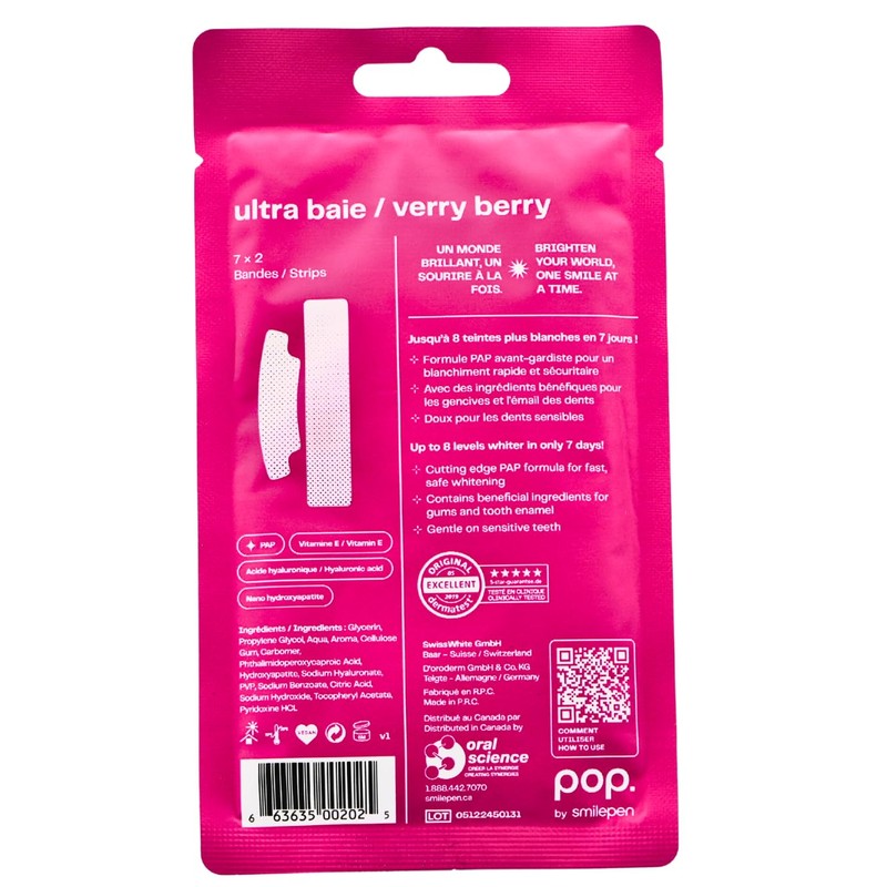 Smilepen Pop Teeth Whitening Strips | Latest PAP-Formula for Fast & Safe Whitening, Up to 8 Shades Whiter in 7 Days, Gentle on Sensitive Teeth with Vitamin E & Hyaluronic Acid (7-Strips, Berry)