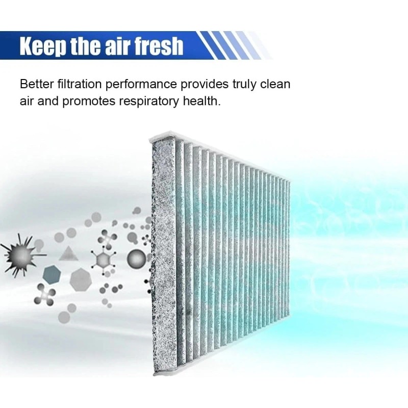 • 【Activated Carbon】: The premium cabin air filter uses activated carbon material to effectively adsorb harmful gases in the air (ozone, sulfur dioxide, n-butane, etc.), which can well filter out cigarette odor or other odors and purify the air inside the car without adding any fragrance to the interior of the car, keeping the air inside the car clean and fresh.