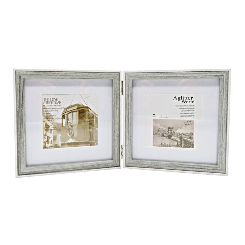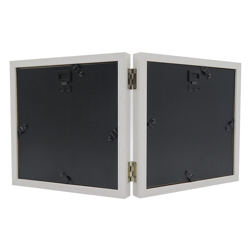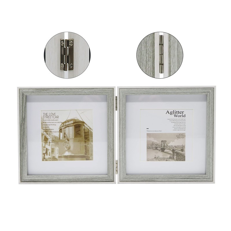 Smiling Art Wooden Picture Frame for 2 Photos Folding Picture Frame Double Frame (White + Grey, 2 x 10 x 10/2 x 15 x 15 cm)