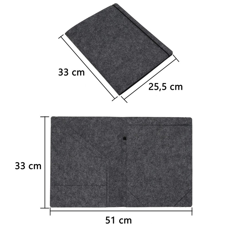 - The document folder is approx. 33 x 25.5 cm. A4 fits very well in the folder.
