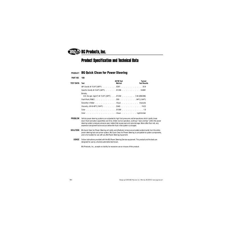 BG Quick Clean for Power Steering safely and effectively eliminates accumulated deposits from power steering pumps, lines, racks, and valves.