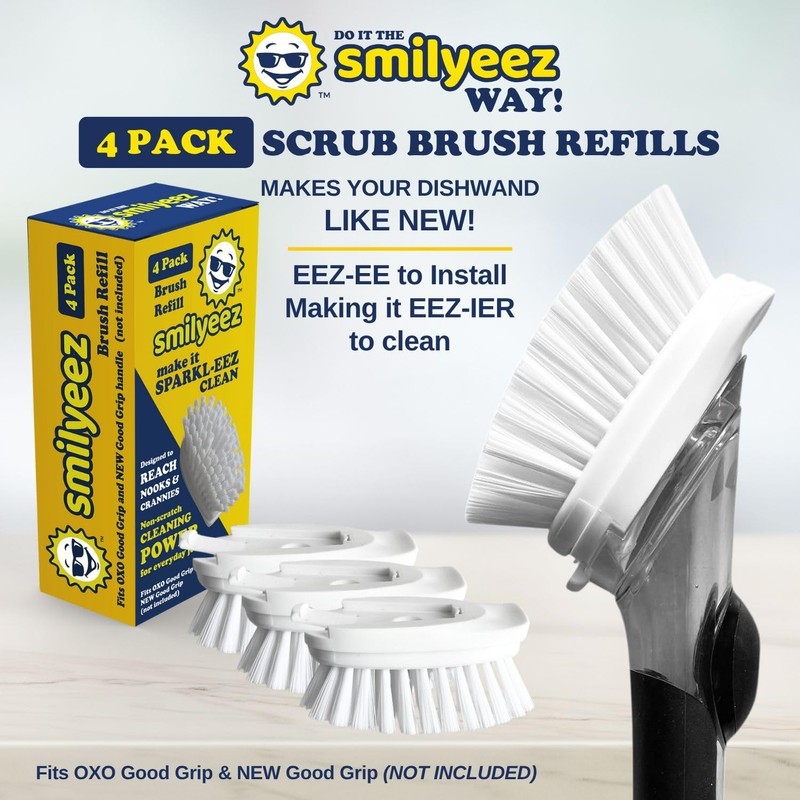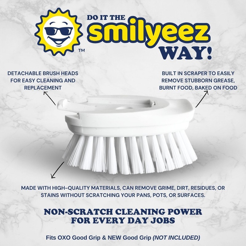 Welcome to Smilyeez – Where Clean Meets Clever! At Smilyeez, we believe everyday tools should make life EEZIER and a little brighter. That’s why we’re dedicated to providing high-quality, thoughtfully designed household products that deliver performance you can count on. From kitchen essentials to smart cleaning solutions, our products are built to last and made to WORK SMARTER—NOT HARDER. Our 4-Pack Dish Scrub Brush Replacement Heads are made with quality and durable nylon bristles, built-in scrapers, and dishwasher-safe convenience, all crafted to fit your favorite OXO Good Grips & NEW Good Grips Handle. It's just one of the many ways Smilyeez helps bring a little joy to everyday clean!