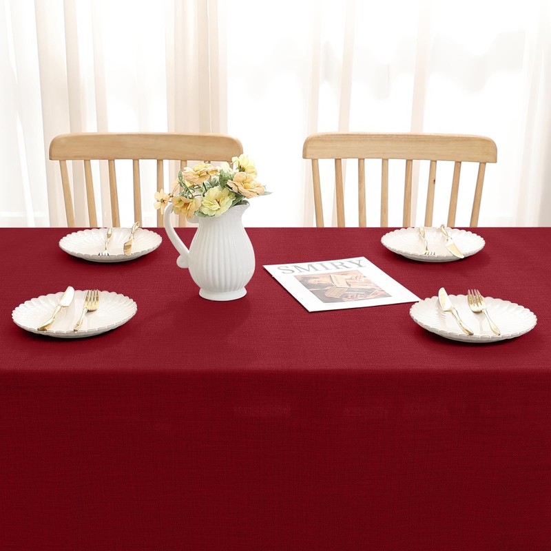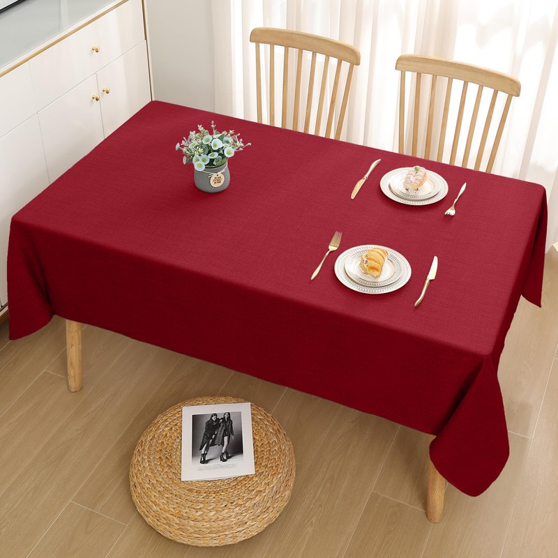 smiry Linen Table Cloth Rectangle 140x100 cm Wipe Clean Tablecloth Water Resistant Table Cover for Kitchen, Party Decorations - Red