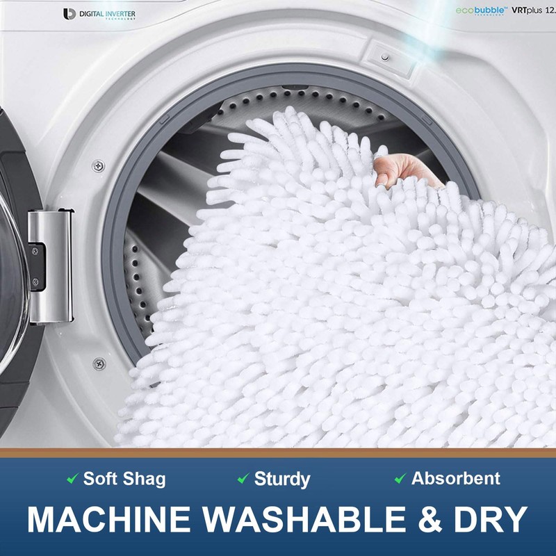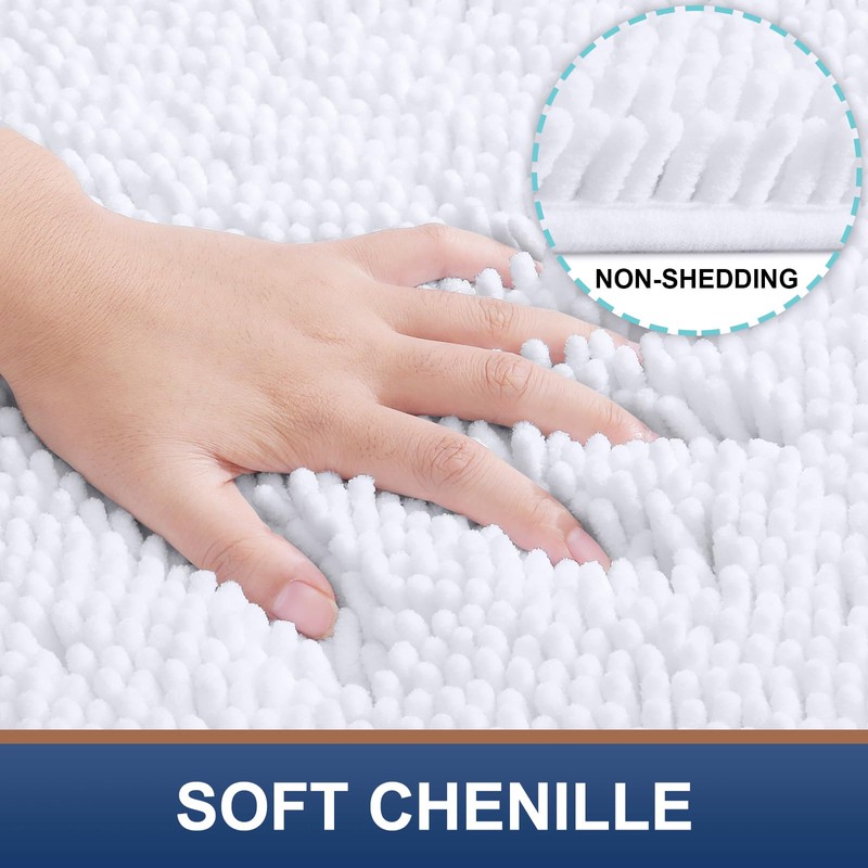 Smiry Luxury Chenille Bath Rug 44''x24'', Extra Soft and Absorbent Shaggy Bathroom Mat Rugs, Machine Washable, Non-Slip Plush Carpet Runner for Tub, Shower, and Bath Room, White