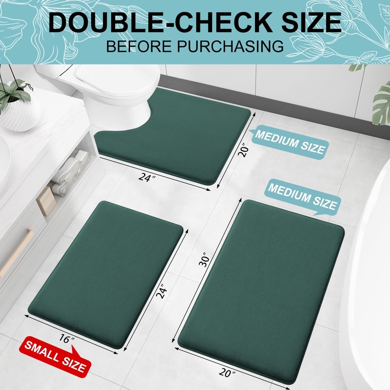 - MULTI-PURPOSE and EASY CLEAN - Smiry bath mats are made of memory foam, available in multiple sizes and colors, can be widely used in bathroom, kitchen, living room, laundry room, hallway, bedroom, balcony, etc. Choose from various colors and sizes to harmonize with your home decoration seamlessly. The mats are machine washable, place the mats in the washer using cold water on the gentle cycle. Don't use chlorine or bleach. Tumble dry on low heat or dry naturally.