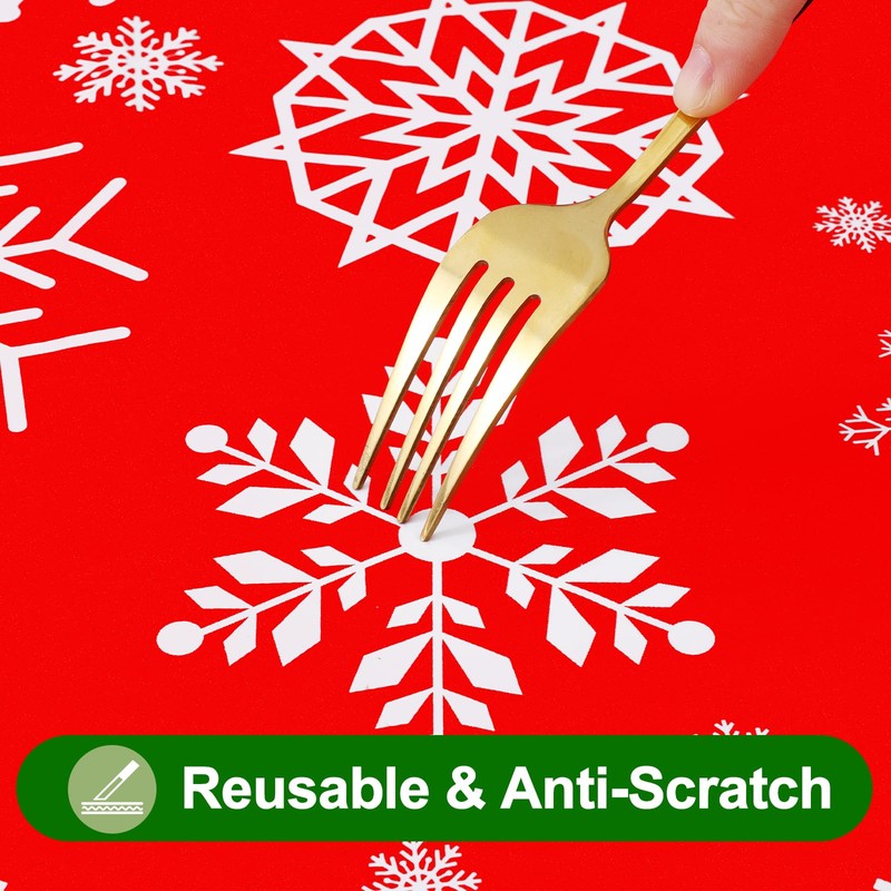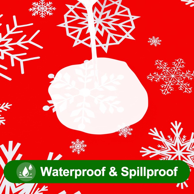 Smiry Plastic Christmas Tablecloth, Snowflake Waterproof Elastic Fitted Table Covers, Wipeable Flannel Backed Vinyl Tablecloths for Christmas Dinner, and New Year Celebration (Red, 30x72 Inches)