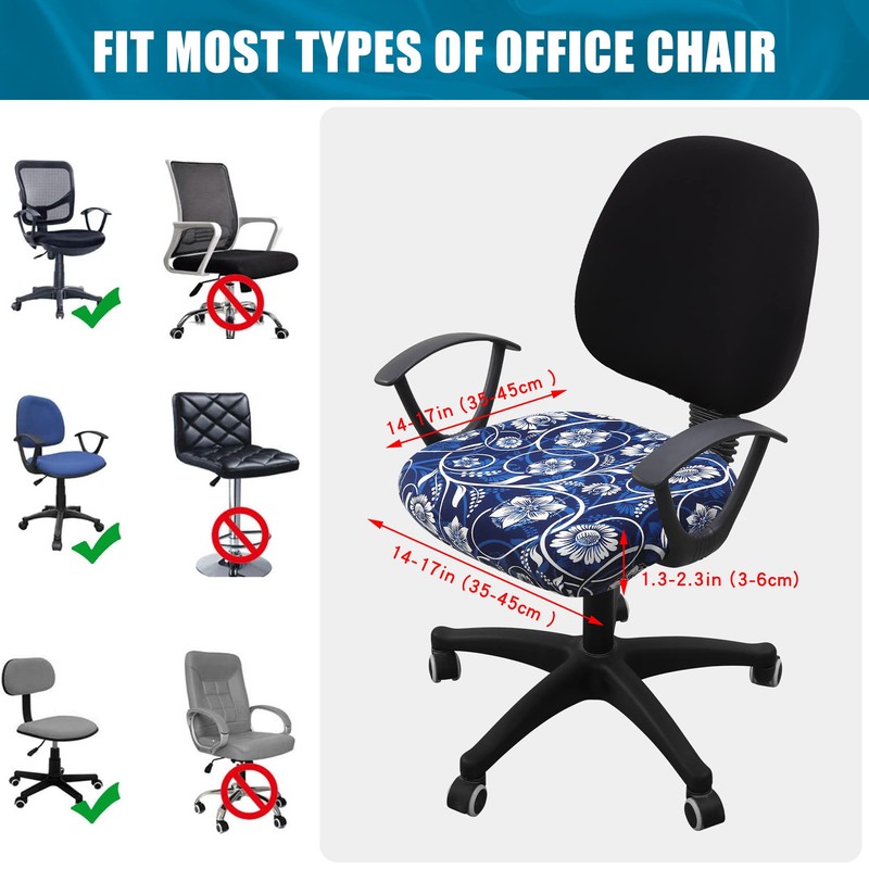 - Perfect Fit Most Chair: Smiry office chair cover will fit office chair backrest width & height: 14"-17"(35-45cm), office chair seat cushion width & length: 15''-20''(38-50cm); Seat cushion thickness: 1.3''-2.5''(3-6cm). Please measure your furniture sizes before ordering