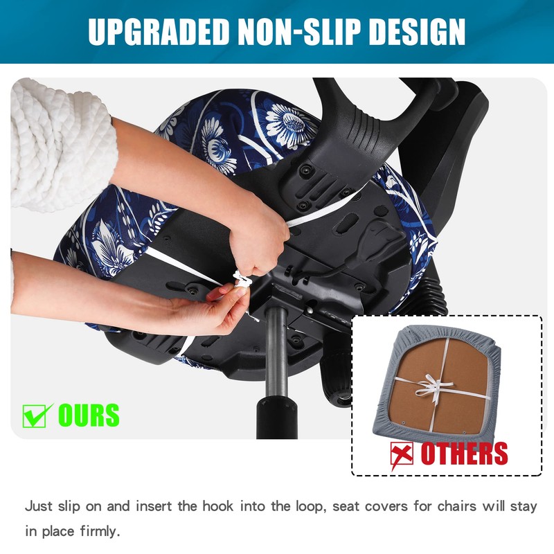 - Upgraded Non-Slip Design: This stretchy desk chair cover is equipped with elastic band with hook for faster install and anti-slip. Just slip on and simply pass the straps through the bottom of the chair and hook the hook into the loop, seat covers for chairs will stay in place firmly
