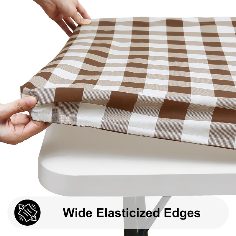 - [Windproof & Non-Slip] Our table cloth designed with strong elastic edges design that holds it securely to the table even when it's windy outside. The fitted tablecloth won't slip and stays in place when people move and pull, to provide you with worry free meal times experience in parties, picnics, camping, indoor or outdoors