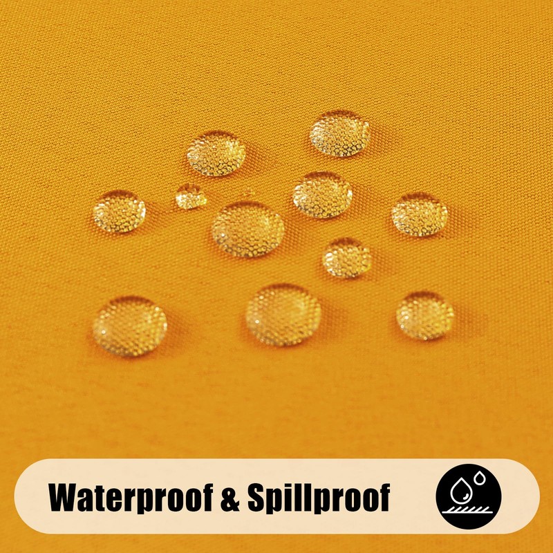 - [Waterproof & Stain Proof] The table cloth is covered with a waterproof coating that causes liquids to form beads on the surface, allowing them to roll off without through to the table. This makes it easy to wipe away most of spills with a damp cloth.