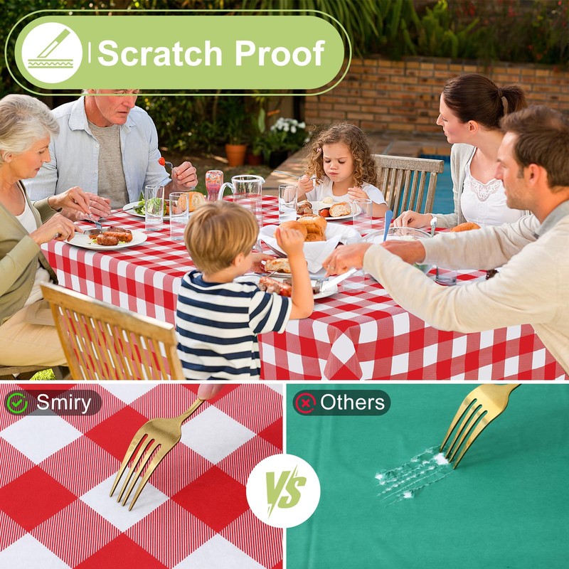 - [Waterproof & Spillproof] Smiry vinyl Table cloth with waterproof design, it prevents liquids like water, milk, and oil from seeping into the table, keeping your surfaces clean and dry which making it the good choice for daily usage and decorations.