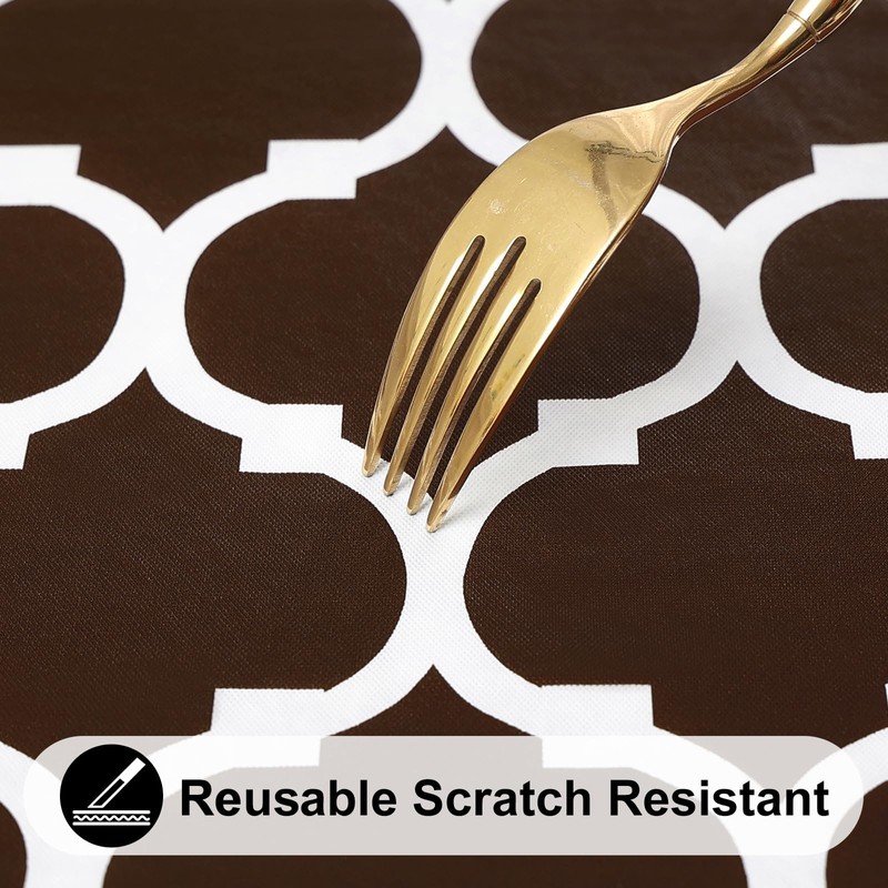 - [Waterproof and Wipe Clean] The waterproof vinyl surfaces insulate our table cloths from water, milk, oil and other stains. Just rub with a damp cloth or sponge to remove the stain and look fresh.