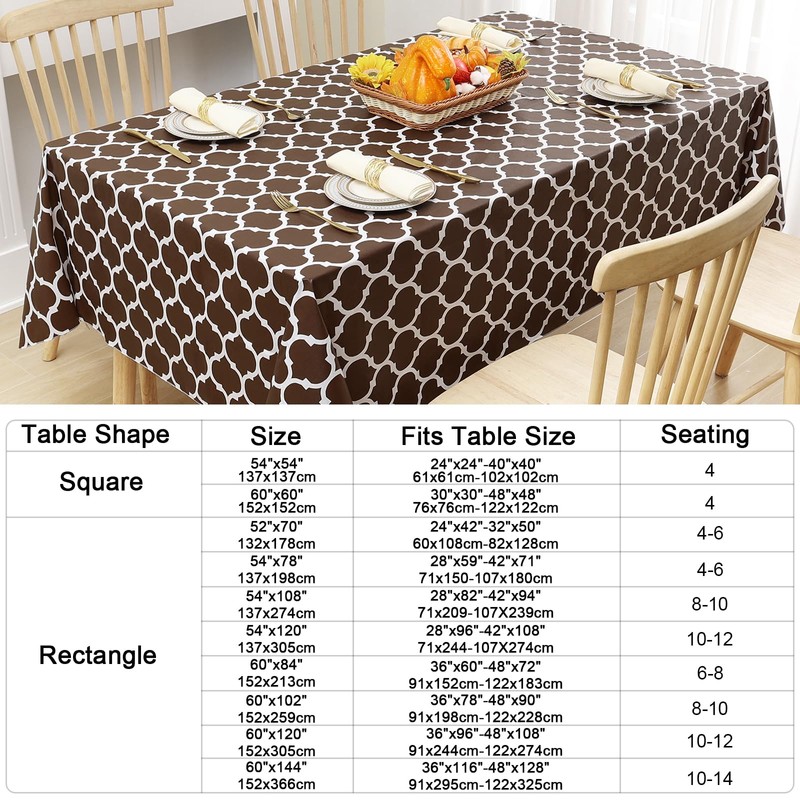 - [Know Your Table Sizes] Smiry rectangle tablecloth measures 60 by 84 inches and fits rectangular tables measuring 36 x 60 inches to 48 x 72 inches, seating up to 6 to 8 adults. To purchase a more appropriate table cover, take a few seconds to measure your table before purchasing.