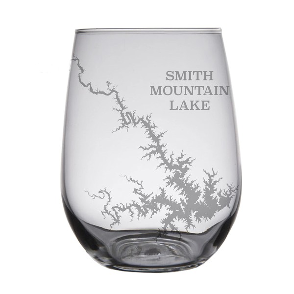 Smith Mountain Lake Map - Engraved Stemless Wine Glasses - Set of 2.