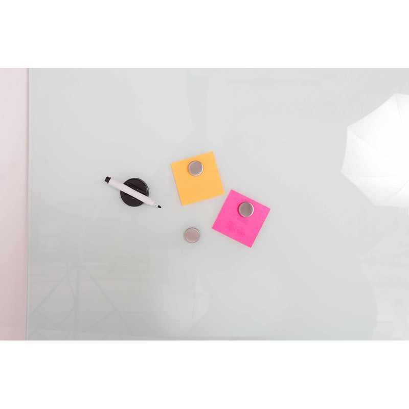 - Frameless board design blends seamlessly into any environment; white colored glass board surface clearly displays white and neon color dry-erase ink; non-absorbent glass board is easy to keep clean