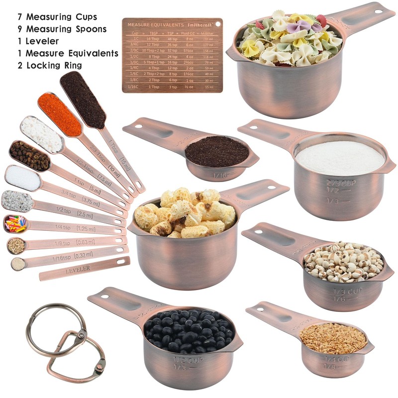 Smithcraft Measuring Cups and Spoons Set, Copper Measuring Cups and Spoons Se...