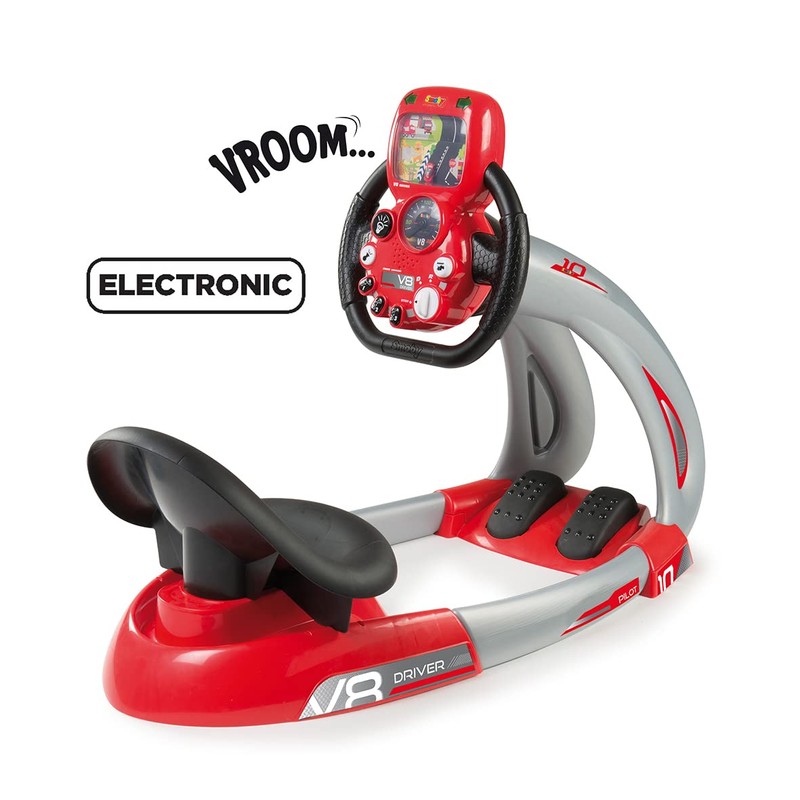 Smoby: V8 Driver, Kids Can Play and Develop Real Life Skills, Features Includes Back Lit Screen, Real Sounds and Mechanical Pedals, for Ages 3 and up