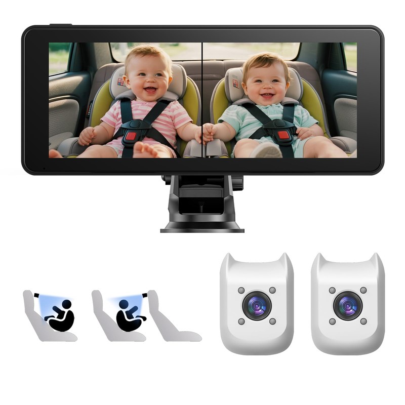 Smocraut 2-Kids Baby Car Seat Camera, 7 Inch Ultrawide Display with Two Rear-...