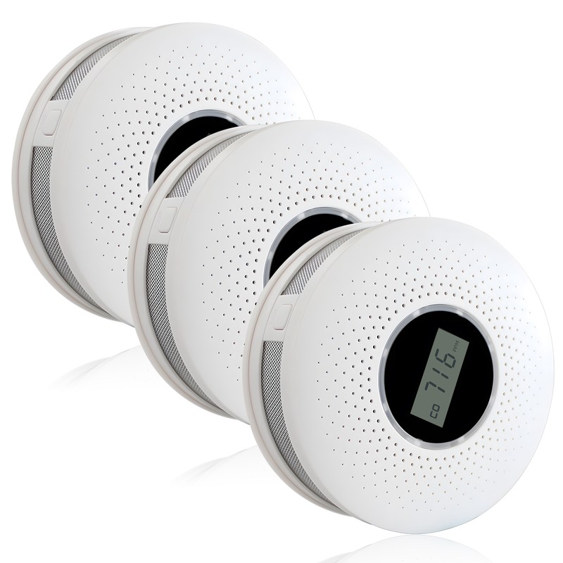 Smoke and Carbon Monoxide Detector Combo with Sound Warning and LCD Display Battery Powered CO Smoke Alarm Detector for Kitchen Bathroom Bedroom Coal Stove 3 Packs - 2 AA Battery Not Included