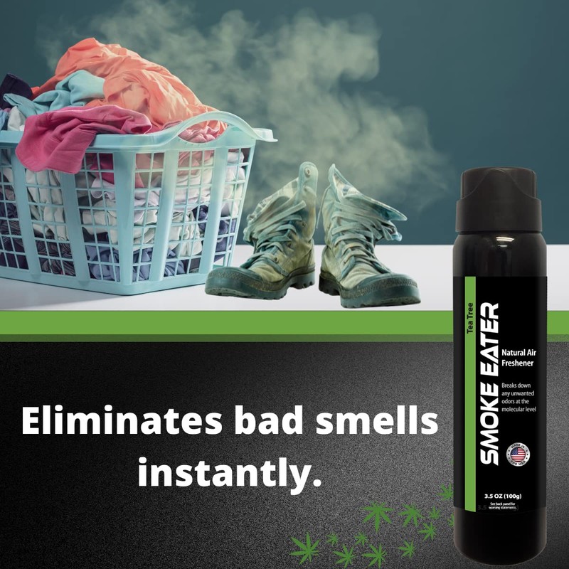 Smoke Eater All Purpose Odor Eliminator - Breaks Down Foul Scents at the Molecular Level - Smoke, Food and Pet Odor - Ideal For The Home, Apartment Cars, Boats - 3.5 oz Aerosol Bottle (Tea Tree Oil)