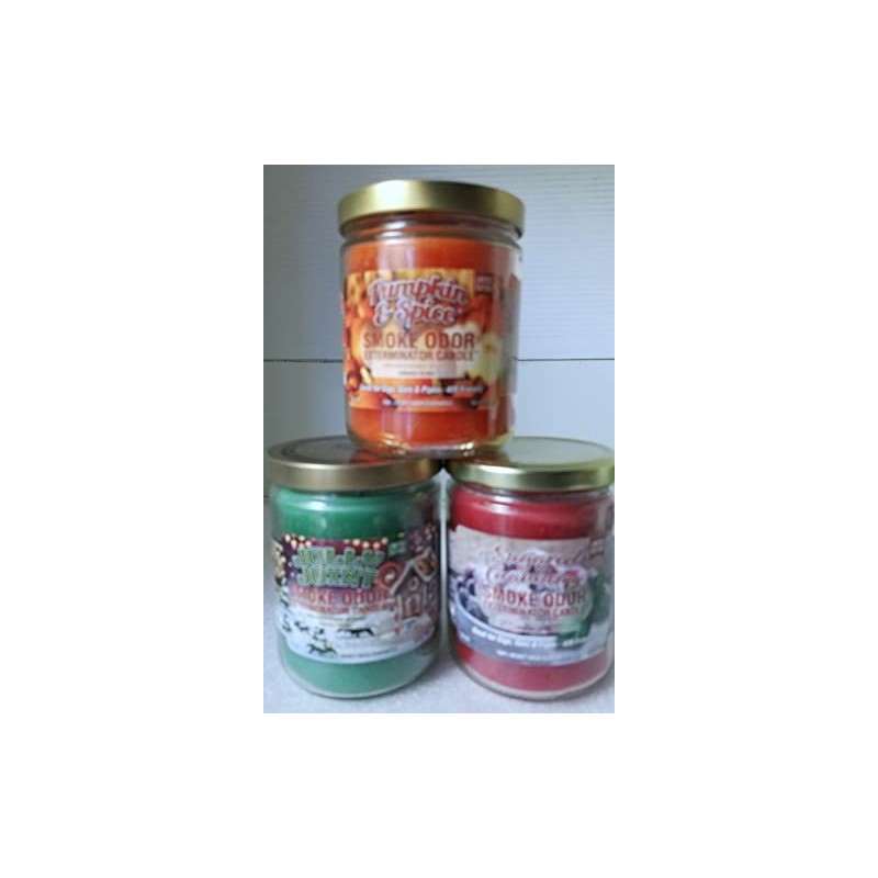 Smoke Odor 13 oz Jar Candles Holidays & Christmas Variety Fragrances Set of Three Candles Pumpkin & Spice, Sugared Cranberry & Jolly Joint.