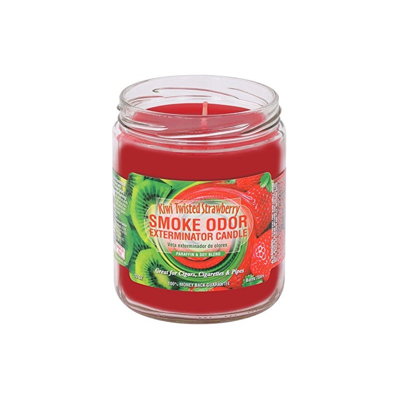 Kiwi Twisted Strawberry - Strawberry & Kiwi blended to perfection. The paraffin & soy blend jar candle is perfect for eliminating your Smoke, Pet and Household Odors. Simply light and the special enzyme formulation will remove smoke, pet and household odors while leaving a refreshing fragrance behind. Each 13 oz candle burns approximately 70 hours!
