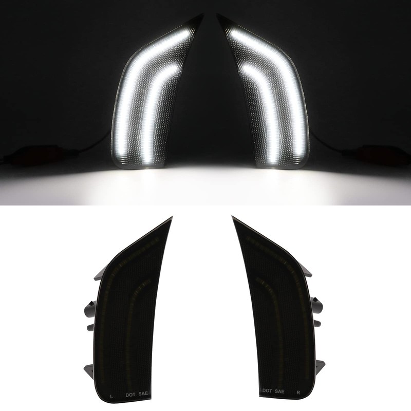 Smoked Lens LED Side Marker Lamp Compatible with 2021-2024 Yukon/Yukon Denali/Yukon XL/Tahoe/Escalade/Suburban/Escalade ESV Driver Passenger Sidemarkers Lamp White Front Turn Singal Lights
