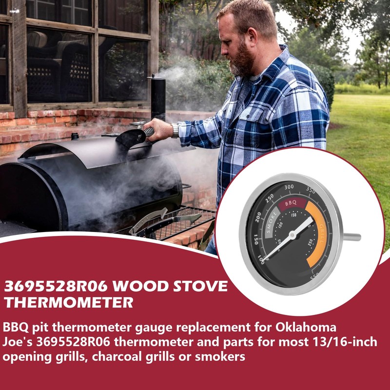 - PERFECT REPLACEMENT: Grill thermometer replacement for Oklahoma Joe's smoker for charbroil oklahoma joes grills and most charcoal or smoked grills with 13/16 inch openings. Replaces Oklahoma Joe's 3695528R06 analog thermometer.
