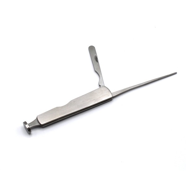 Folding pipe stopper with stirrer and scraper. Very stable and spring flap (folding knife principle, but please be careful! If handled incorrectly, the folding system can snag and if necessary Break off the stirrer if you go too coarse. Rather fold back again and if necessary try again!)