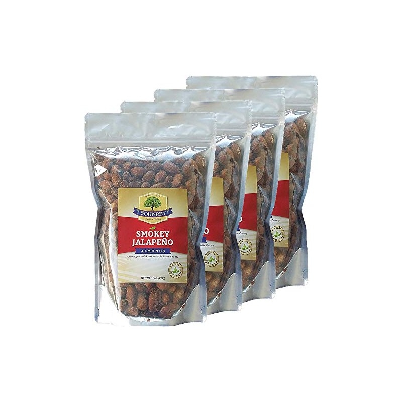 Smokey Jalapeno Almonds (16oz) Steam Pasteurized Roasted Almonds from the Sohnrey Family Farm (4-Pack) by Sohnrey Family Foods Store