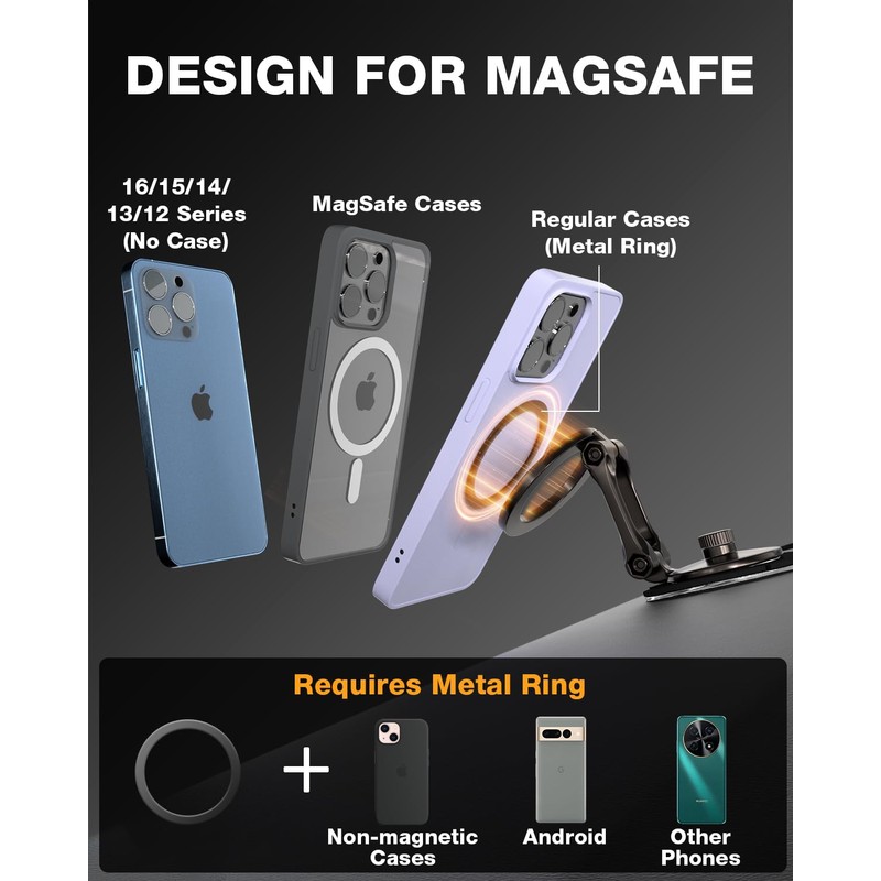 - Note: If you use a phone case, please use our magnetic phone holder for car with the black magnetic ring in the package. Please read the instructions carefully to ensure proper installation