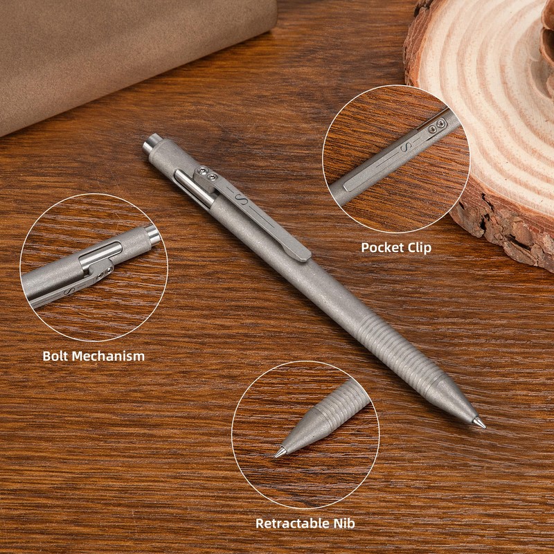 - Exceptional Durability - Constructed from high-quality TC4 titanium alloy, this retractable bolt action pen offers outstanding durability, resistance to fading, and protection against harsh environments.