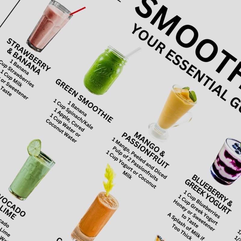 Discover the world of smoothies like never before with the "Smoothies Your Essential Guide" poster.
