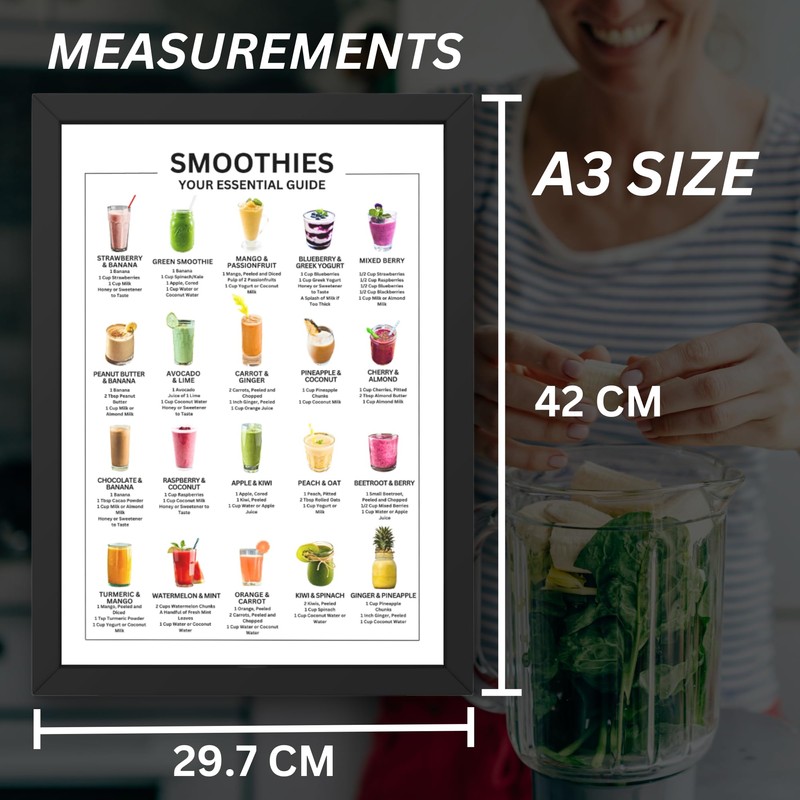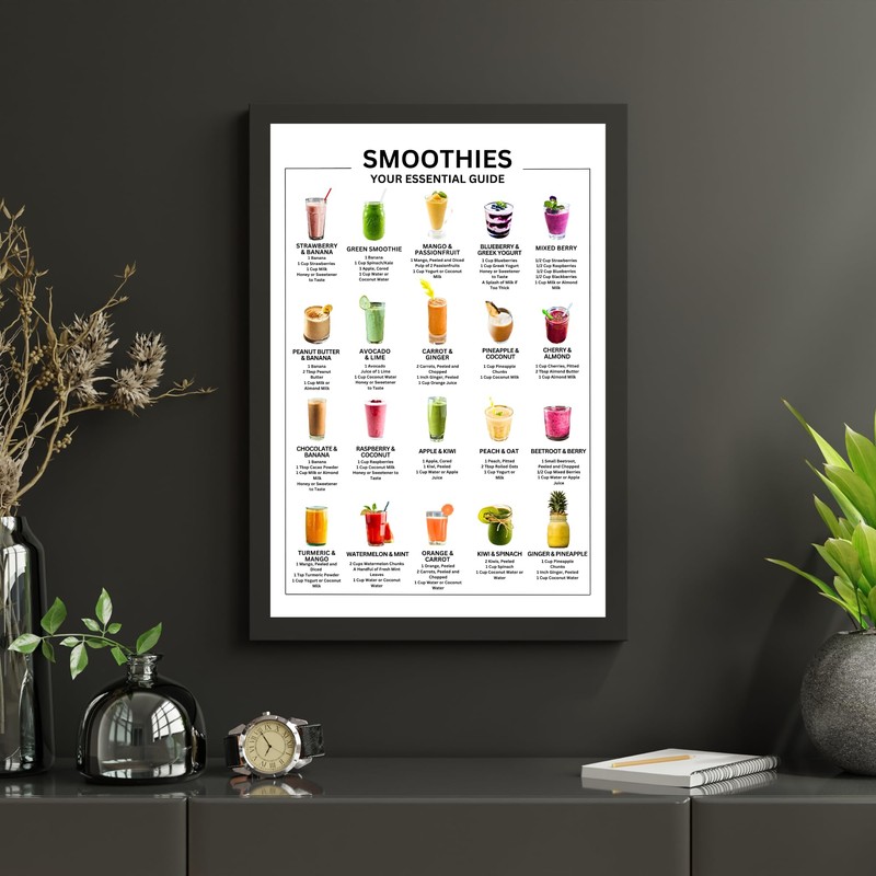 Smoothies Your Essential Guide Poster - Top 20 Smoothie Recipes with Pictures - Kitchen Wall Art (A4 Print Only)