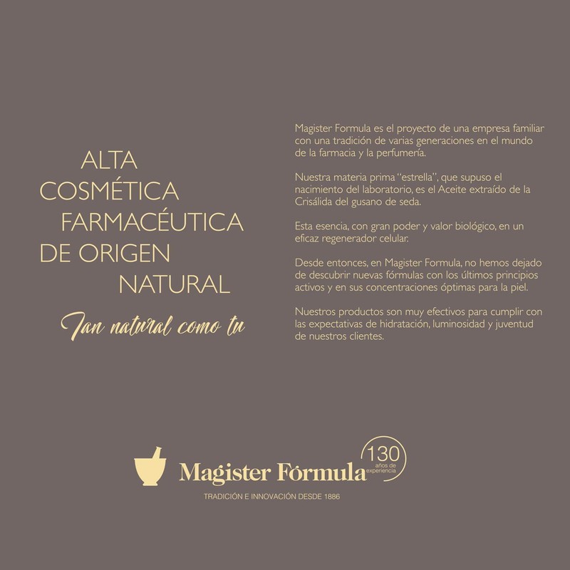 - Professional quality: at Magister Fórmula we take the quality of our creams very seriously. We have more than 130 years (since 1886) of experience supplying pharmacies and perfumeries throughout Spain. Therefore, you can rely on a 100% satisfaction guarantee and a dispatch of your order within a few days.