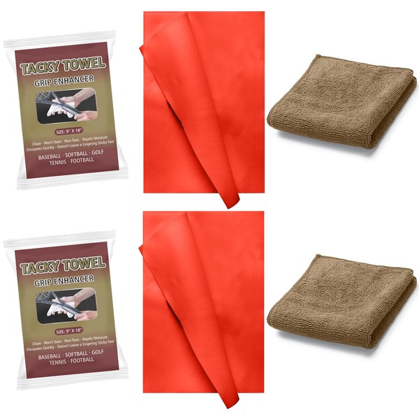 SmoothNovelty 2 Kit Grip Enhancer Towel Sticky Grip Enhancer Include 2 Tac Rag Sticky Towel 2 Microfiber Towels for Sweaty Hands Tacky Cloth Softball Golf Baseball Tennis(Red)