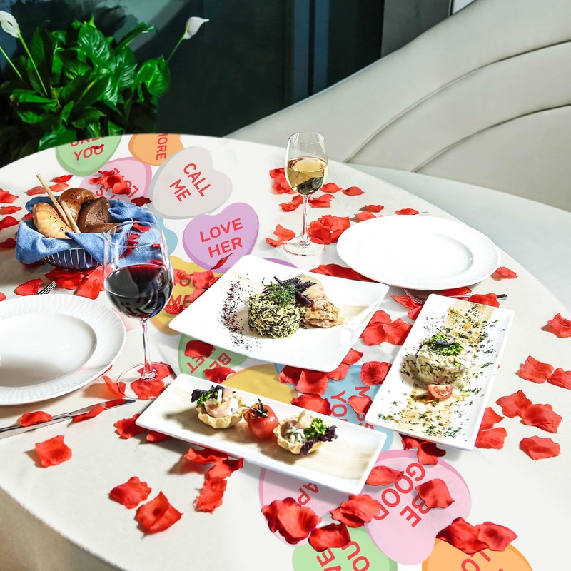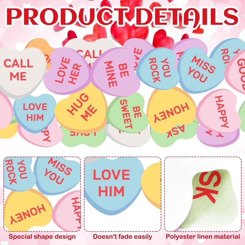 - Valentine's Day Design: our Valentine's Day table runner features a colorful design of love hearts; Each heart, printed with a sweet quotation, adds a romantic atmosphere to your Valentine's Day decoration; Our candy colored design brings more happiness to your holiday table runners, setting a lovely festive mood