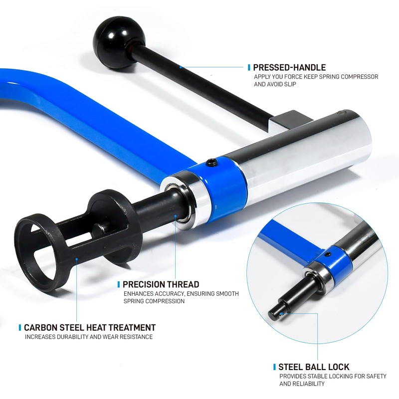 - Enhanced Safety with Steel Ball Lock Mechanism: The steel ball lock system ensures a secure grip on the valve spring during compression, preventing slippage or rebound, providing safer and smoother operation with less risk of injury or damage